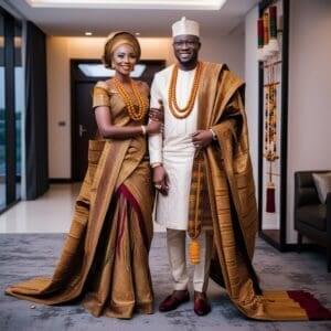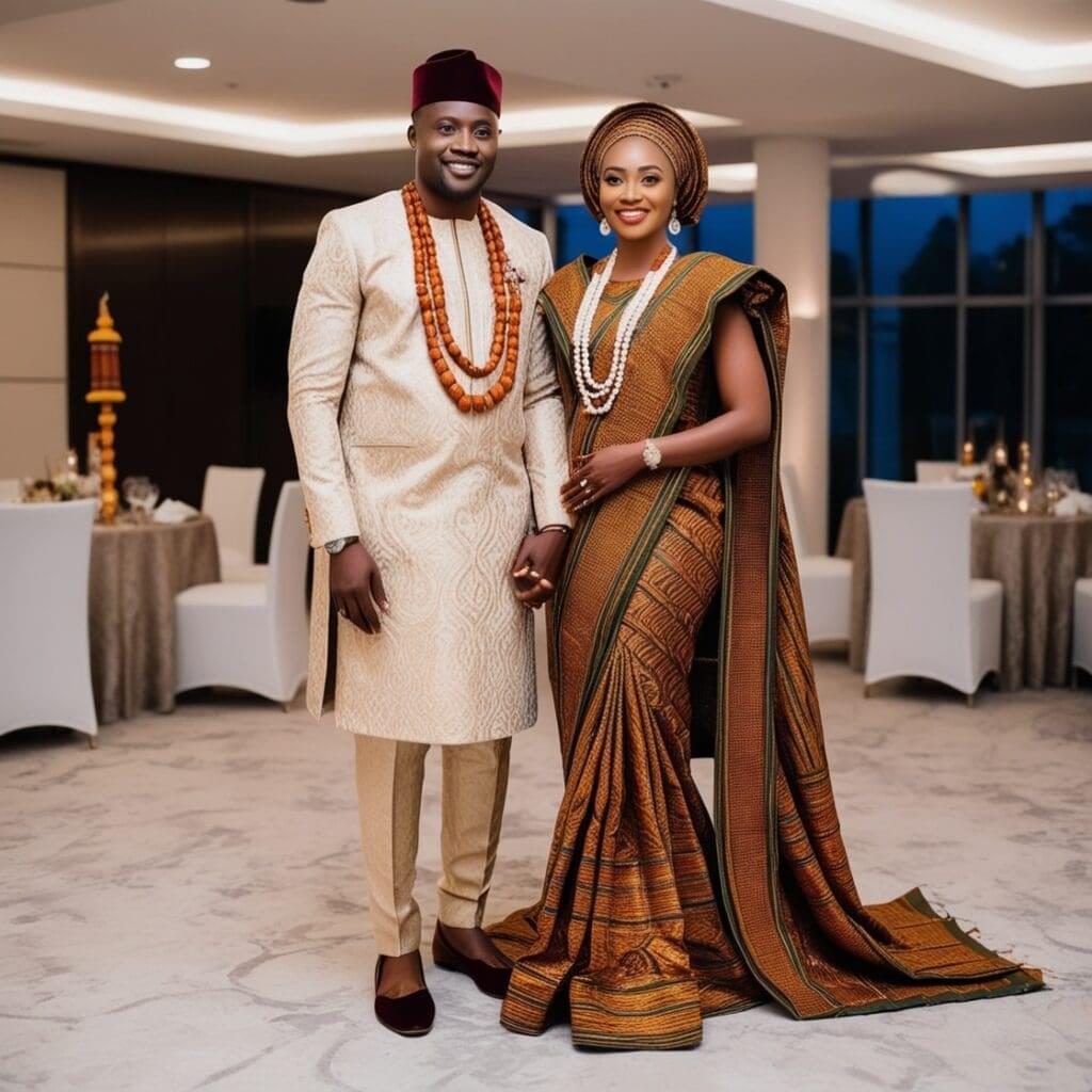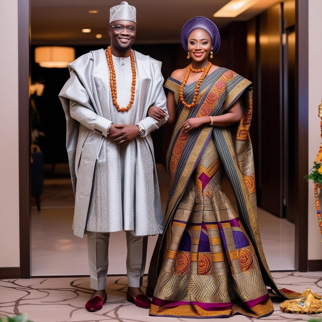 Aso Oke is a luxurious, handwoven fabric from Nigeria, traditionally worn by the Yoruba people. It’s often reserved for special occasions like weddings, festivals, and chieftaincy ceremonies. Aso Oke comes in various styles, each with its own significance. For example, the Etu Aso Oke is dark blue and symbolizes wealth and nobility, while the Sanyan Aso Oke, made from silk and cotton, is often associated with royalty and high status. Wearing Aso Oke is like donning a piece of history, rich with cultural significance and artistry.