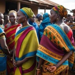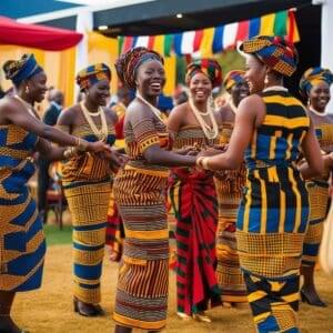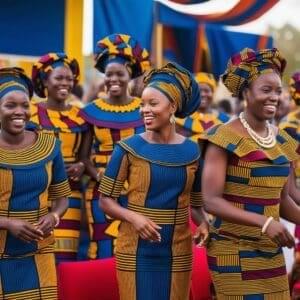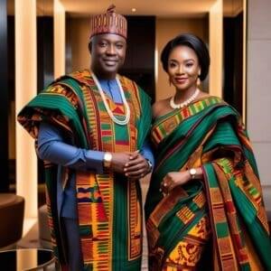 Kente cloth is synonymous with Ghanaian culture and is often referred to as the \”cloth of kings.\” This luxurious, handwoven fabric is renowned for its bright colors and complex patterns. Each Kente design carries a specific meaning, often related to proverbs, historical events, or social status. For example, yellow symbolizes wealth and fertility, while blue represents peace and harmony. Wearing Kente is more than a fashion statement—it’s an homage to a rich cultural heritage that dates back centuries.